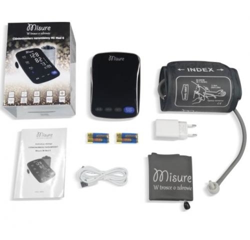 Akcesoria: 1x Urządzenie, 1x Mankiet, 4x Baterie, 1 x Zasilacz, 1 x Pokrowiec, 1 x Instrukcja obsługi