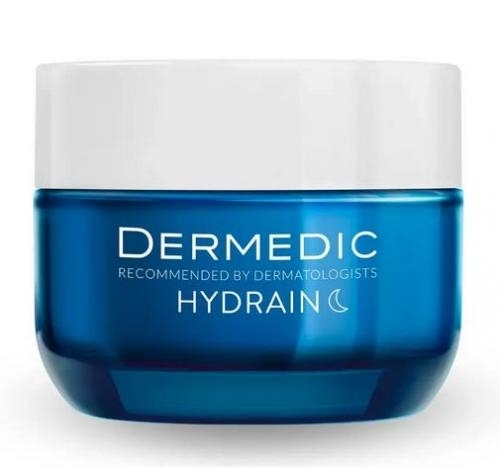 DERMEDIC HYDRAIN Krem na noc to specjalistyczny dermokosmetyk stworzony dla skóry suchej, bardzo suchej, odwodnionej i wrażliwej, który podczas snu intensywnie nawilża i wspomaga jej regenerację. W nocy procesy regeneracyjne skóry są szczególnie aktywne, dlatego receptura kremu wspiera je, zapewniając głębokie i długotrwałe nawilżenie. Innowacyjny kompleks Aqualare®, obejmujący cztery postacie kwasu hialuronowego o różnej wielkości cząsteczek, Trehalozę, Glikozaminoglikany oraz Wodę termalną, działa wielopoziomowo, zatrzymując wodę w głębszych warstwach i przywracając jej równowagę. Już od pierwszej aplikacji krem daje natychmiastowe uczucie ulgi, skóra jest intensywnie nawilżona, odżywiona, miękka i przyjemna w dotyku.