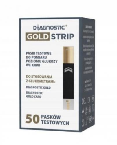 Paski testowe do pomiaru poziomu glukozy we krwi Diagnostic GOLD STRIP przeznaczone są do samodzielnego pomiaru poziomu glukozy przez pacjenta z pełnej krwi włośniczkowej pobranej z opuszki palca, dłoni, przedramienia lub ramienia. System pomiaru poziomu glukozy we krwi jest przeznaczony dla użytkowników nieprofesjonalnych i powinien być używany przez jedną osobę. Paski testowe Diagnostic GOLD STRIP służą do użytku zewnętrznego (diagnostyka in vitro).