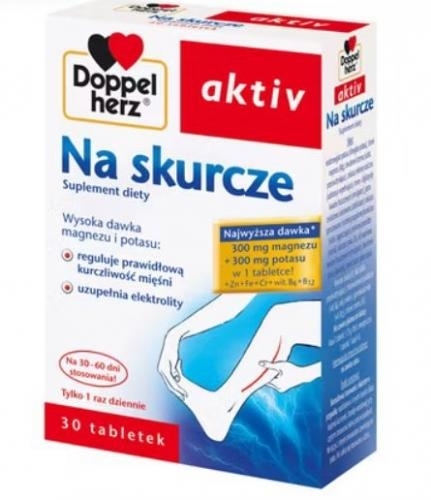 Doppelherz aktiv Na skurcze to suplement diety zawierający wysoką dawkę magnezu i potasu, przyczyniające się do uregulowania prawidłowej kurczliwości mięśni. Dodatkowo, preparat zawiera cynk, witaminy B6 i B12, żelazo i chrom.