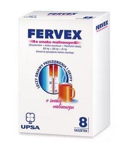 Fervex o smaku malinowym - granulat do sporządzania roztworu doustnego w saszetkach jest lekiem złożonym.
