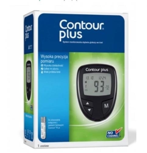 System monitorowania stężenia glukozy we krwi CONTOUR®PLUS firmy Ascensia Diabetes Care (glukometr, paski testowe i roztwór kontrolny) przeznaczony jest do samodzielnego wykonywania badań przez osoby chore na cukrzycę oraz przez personel medyczny w celu monitorowania stężeń glukozy we krwi pełnej żylnej i świeżej krwi pełnej włośniczkowej uzyskanej z opuszki palca lub z dłoni. Służy do wykonywania pomiarów ilościowych stężenia glukozy w krwi pełnej w zakresie od 10 mg/dl do 600 mg/dl.