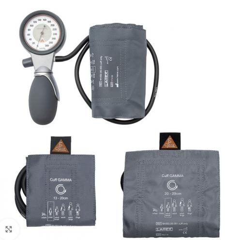 GAMMA GP, wyposażony w innowacyjny zawór przyciskowy. Dolna obudowa jest formowana z odpornego na uderzenia tworzywa sztucznego z powłoką amortyzującą wstrząsy i zapobiegającą wyślizgiwaniu się. Bez lateksu, odporny na wstrząsy. Typowo wyposażony w mankiet dla dorosłych, ale dostępny również w wersji z mankietem dla dzieci. Inne, mniej typowe rozmiary mankietów dokupisz w akcesoriach.