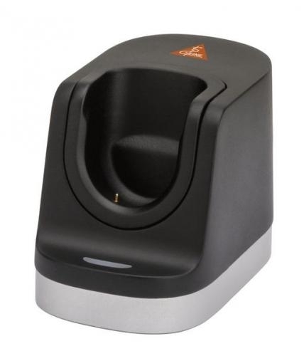Stylowy sposób na ładowanie dermatoskopu: Kompaktowa konstrukcja o szerokości 70 mm, wysokości 60 mm i głębokości 98 mm.