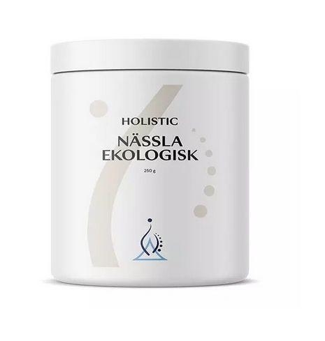 Holistic Nässla zawiera proszek z pokrzyw. Pokrzywy należą do roślin bogatych w substancje odżywcze, zawierają: minerały, witaminy, flawonoidy, antyutleniacze, chlorofil, aminokwasy, białka. Pokrzywa jest bardzo bogata w żelazo i chlorofil, co doskonale stymuluje hematopoeze (proces wytwarzania i różnicowania się elementów morfotycznych krwi). Jest dodatkowo alkaliczna i pomaga odkwasić organizm.