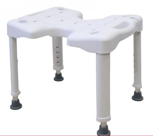 Krzesło prysznicowe bez oparcia AT51011 – lekkie i stabilne siedzisko do kąpieli. Regulowana wysokość, antypoślizgowe nóżki i ergonomiczne wycięcie w kształcie litery „U”.