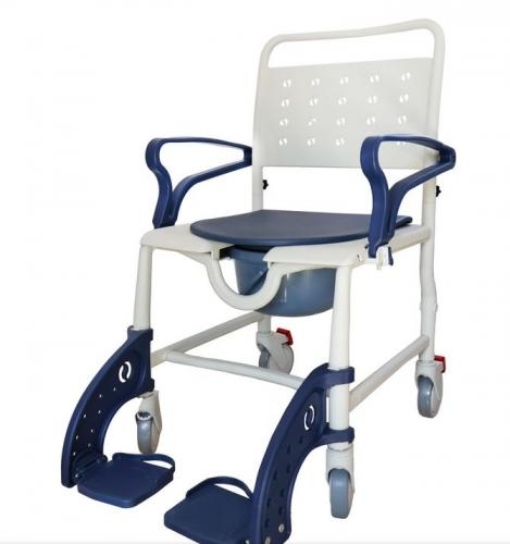 Siedzisko z otworem i wyjmowanym pojemnikiem umożliwia korzystanie z krzesła bez potrzeby wstawania. Zdejmowane podnóżki oraz ergonomiczne podłokietniki ułatwiają transfer z łóżka lub wózka. Wodoodporne materiały i łatwo zmywalna powierzchnia pozwalają na szybkie utrzymanie higieny.