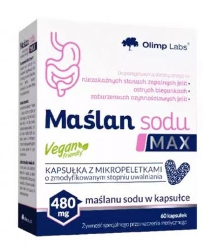 Maślan sodu max to produkt w postaci kapsułek zawierających maślan sodu w mikropeletkach, co warunkuje wydłużone uwalnianie składnika aktywnego, również w dalszych częściach przewodu pokarmowego. Maślan sodu max jest świetną propozycją dla osób zmagających się z problemami jelitowymi oraz w stanach, gdy naturalna produkcja kwasu masłowego w jelitach jest niewystarczająca.