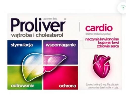 Proliver Cardio to suplement diety, którego składniki pomagają w prawidłowym funkcjonowaniu wątroby (cholina), wspomagają trawienie (cykoria), pomagają w utrzymaniu prawidłowego poziomu cholesterolu we krwi(wyciąg z zielonej herbaty), wspomagają prawidłowe funkcjonowanie serca (ostrokrzew paragwajski) oraz wspierają krążenie krwi (owoce głogu).