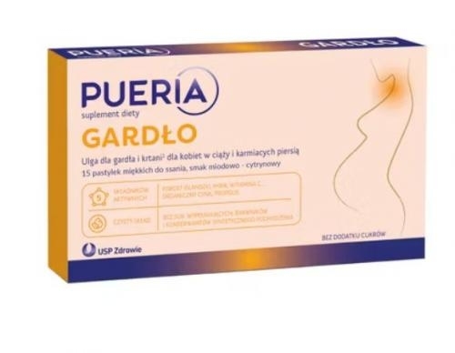 Pueria Gardło to suplement diety opracowany z myślą o kobietach w ciąży i karmiących piersią. Suplement diety Pueria Gardło zawiera 5 aktywnych składników: porost islandzki, imbir, witamina C, organiczny cynk oraz propolis. Składniki te działają łagodząco na gardło, krtań i struny głosowe, przynoszą ulgę w przypadku uczucia dyskomfortu w gardle. Wspierają prawidłowe funkcjonowanie układu oddechowego i układu immunologicznego.