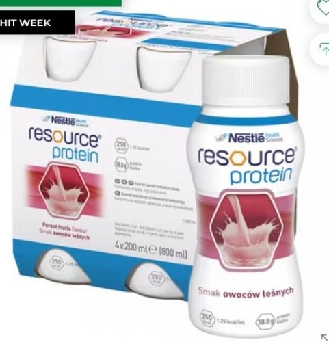 Resource Protein o smaku owoców leśnych to kompletna pod względem odżywczym, wysokobiałkowa dieta w płynie. Żywność specjalnego przeznaczenia medycznego, do postępowania dietetycznego w stanach niedożywienia i/lub w przypadku ryzyka niedożywienia, któremu może towarzyszyć zwiększone zapotrzebowanie na białko, związanego z chorobą.