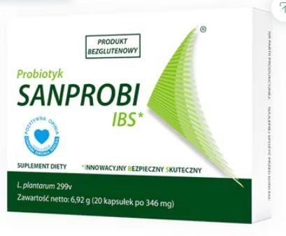 Sanprobi IBS to probiotyk przeznaczony jest dla osób, które zmagają się z problemami przewodu pokarmowego. Zawarty w nim główny składnik Lactabacillis plantarum 299v zachowuje i wspiera mikrobiotę jelitową. Każda kapsułka Sanprobi IBS zawiera około 10x109 (10 miliardów) jednostek tworzących kolonie (CFU) żywych bakterii probiotycznych.