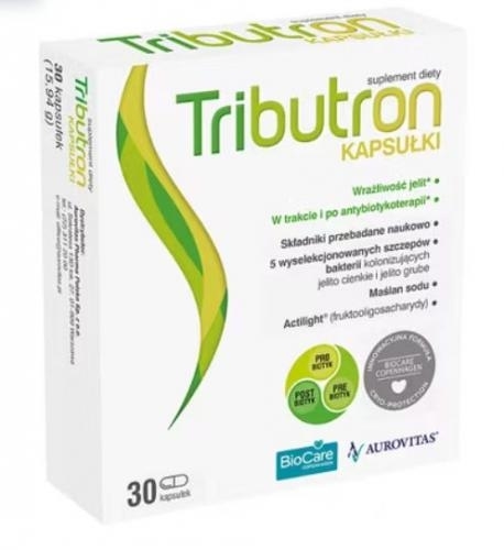 Tributron jest innowacyjnym synbiotykiem, którego każda kapsułka zawiera 1 miliard bakterii kwasu mlekowego z 5 wyselekcjonowanych szczepów. Zastosowanie technologii krioprotekcji (CRYO-PROTECTION) chroni bakterie probiotyczne przed stresem mechanicznym i termicznym podczas procesu wytwarzania i przechowywania produktu oraz przed działaniem soku żołądkowego i żółci.