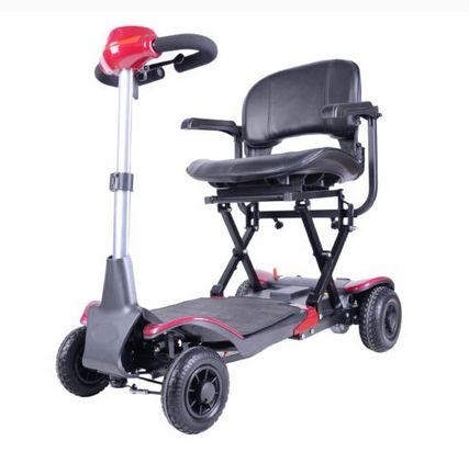 Wózek inwalidzki elektryczny AT52314 z automatycznym składaniem, regulowaną wysokością kierownicy, przełączaniem trybu hamowania, klaksonem, kompaktowym rozmiarem, zdejmowanym siedzeniem i wyjmowanym akumulatorem.