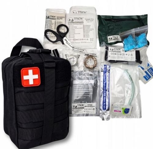 Apteczka militarna taktyczna zestaw 23 elementowy IFAK STAZA CAT SURVIVAL wojsko w kolorze czarnym.