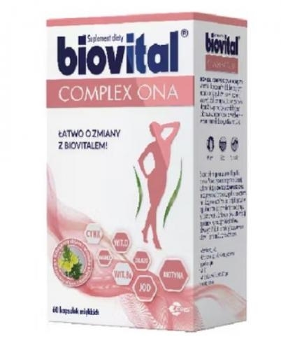 Biovital Complex Ona to suplement diety, który zawiera to połączenie witamin i mikroelementów, wzbogacone olejem z wiesiołka, w tym kwasem gamma-linolenowym (GLA min. 9%).
