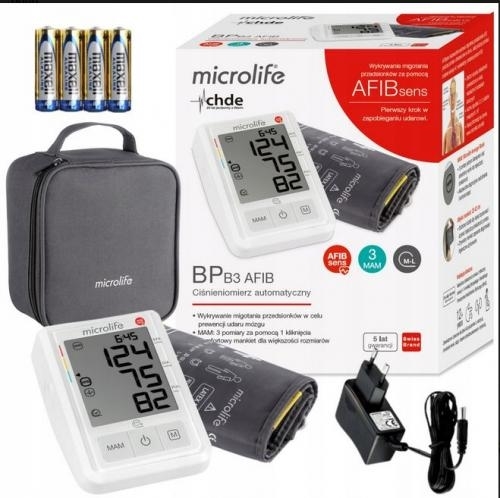 Ciśnieniomierz automatyczny Microlife B3 AFIB migotanie przedsionków zasilacz
