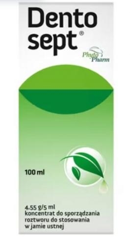 Dentosept w postaci koncentratu do sporządzania roztworu do płukania jamy ustnej jest tradycyjnym lekiem roślinnym przeznaczonym do stosowania w stanach zapalnych jamy ustnej i gardła oraz przy krwawieniu z dziąseł i pomocniczo w parodontozie.