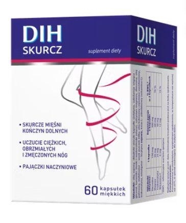 Preparat DIH Skurcz polecany jest w celu uzupełnienia codziennej diety w diosminę, trokserutynę oraz magnez i witaminę C.
