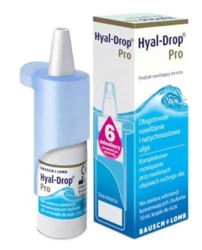 Krople do oczu Hyal-Drop Pro zapewniają intensywne nawilżenie oczu. Ze względu na brak substancji konserwujących w składzie, można stosować je codziennie i tak często, jak jest to potrzebne. Nie ma ograniczeń dotyczących czasu stosowania. Dzięki unikalnej budowie dozownika, z produktu można korzystać przez 6 miesięcy po otwarciu.