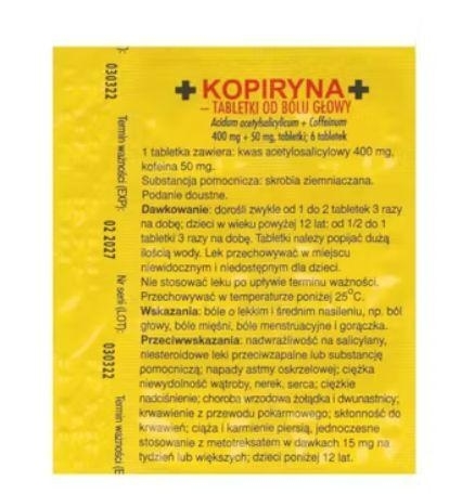 Zazwyczaj stosowana dawka leku Kopiryna - tabletki od bólu głowy, to: