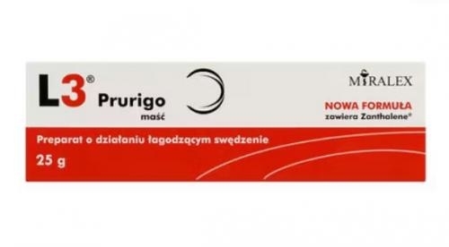 L3 Prurigo maść z aplikatorem chroni przed czynnikami podrażniającymi skórę i wywołującymi świąd. Łagodzi podrażnienia oraz odparzenia, zmniejsza świąd i pieczenie.