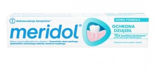 Pasta do zębów Meridol zapobiega chorobie zapalenia dziąseł i zapalenia przyzębia, a także chroni przed próchnicą. Dzięki zawartości fluoru w postaci aminofluorku i fluorku cyny, które oddziałują na płytkę nazębną, hamując rozwój bakterii, zapobiega tworzeniu się osadu i wzmacnia szkliwo.