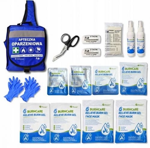 Bogate i wszechstronne wyposażenie zapewnia realne wsparcie w sytuacji oparzenia — pomaga szybko schłodzić ranę, zabezpieczyć ją przed zanieczyszczeniem i ograniczyć rozwój powikłań.