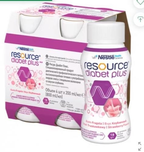 Resource Diabet Plus o smaku truskawkowym to kompletna pod względem odżywczym, wysokobiałkowa i wysokoenergetyczna dieta w płynie, z dodatkiem błonnika. Żywność specjalnego przeznaczenia medycznego, do postępowania dietetycznego w przypadku niedożywienia lub ryzyka niedożywienia u pacjentów z zaburzeniami metabolizmu glukozy, np.: