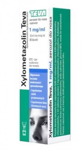 Xylometazolin Teva 1 mg/ml jest przejrzystym, niemal bezbarwnym roztworem dostępnym w butelce ze szkła brunatnego zawierającej 10 ml (nie mniej niż 90 dawek) roztworu z pompką rozpylającą, aplikatorem do nosa i ochronnym wieczkiem w tekturowym pudełku.