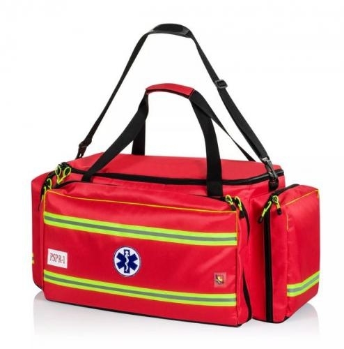 Całość torby zabezpieczona bardzo grubą pianką. Torba wyposażona w uchwyty do przenoszenia na plecach, na ramieniu oraz do trzymania w dłoni. Oznakowana krzyżem św. Andrzeja oraz na życzenie z napisem PSP R1 .
